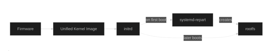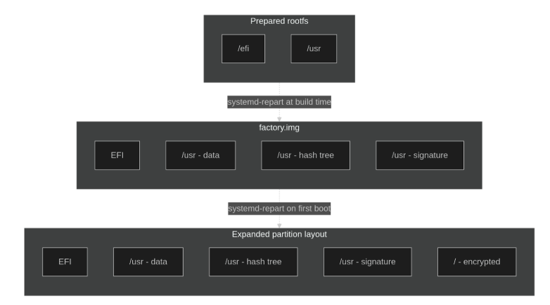 With this, we will get our `/usr` burned into the factory image and then use `systemd-repart` again on the device to fill in the remaining parts.